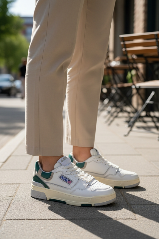 AUTRY SNEAKERS SNEAKERS MEDALIST LOW BICOLOR IN PELLE BIANCA E VERDE