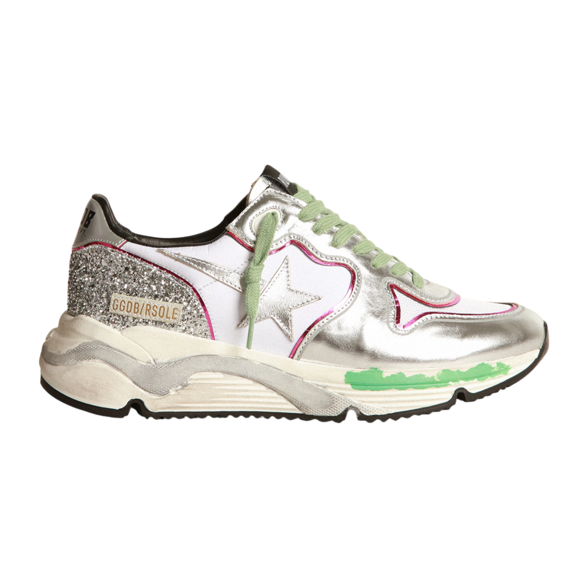 Lacci verde oliva Inserto glitterato argento sul tallone Iconica stella laterale in suede