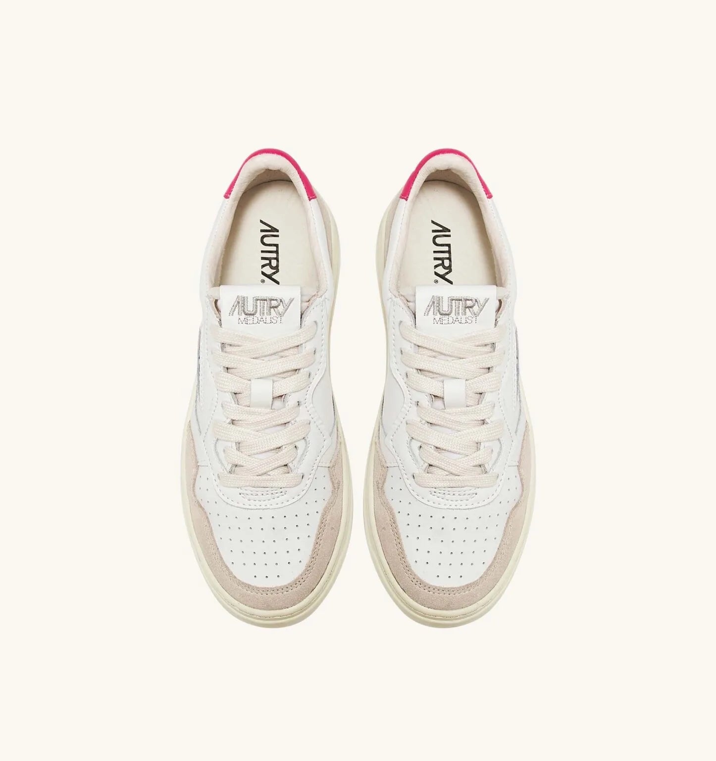Autry Medalist Low bianca in pelle e camoscio Spoiler Fucsia AULW LS50